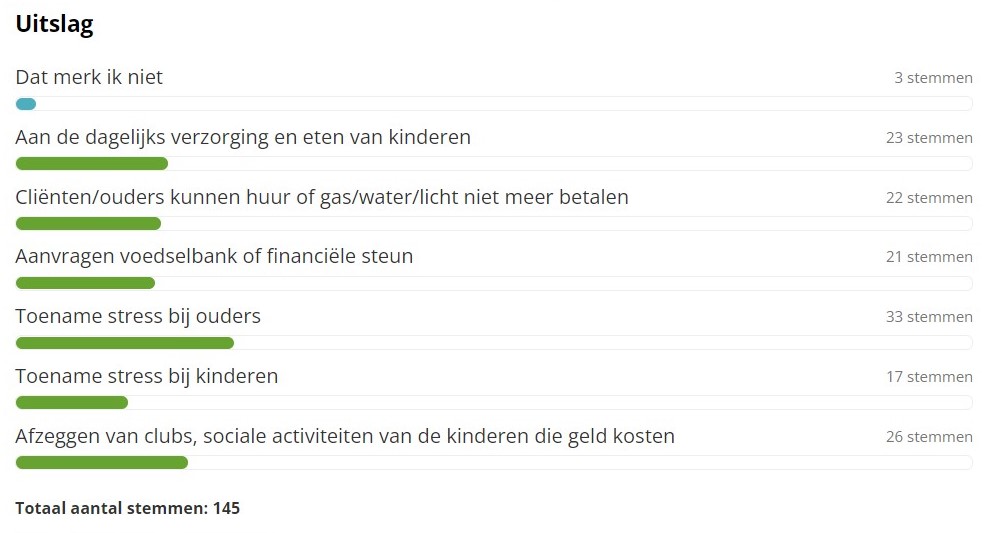 Op de pollvraag 'Hoe merk jij dat er meer gezinnen financiële problemen hebben?' is fors gestemd.